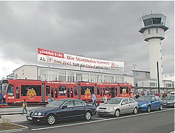 Mit dem AirCombino erfolgte die Jungfernfahrt auf dem neuen Streckenabschnitt. Am 20. Juni 2005 wurde die Stadtbahnlinie 4 zum Flughafen eröffnet. Mit einem EVAG Stadtbahnfest vor dem Terminal B von 16.00 - 19.00 Uhr wurde die neue Stadtbahnverbindung "Hauptbahnhof - Bindersleben" würdig gefeiert. Die kostenlose Schnupperfahrt auf der Strecke Anger - Bindersleben wurde von der Erfurtern rege genutzt um wieder ihren Flughafen zu besuchen. |