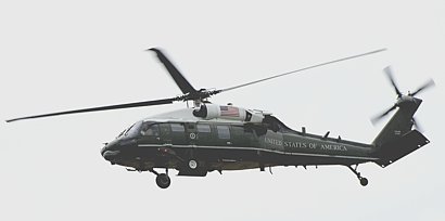 | Die "Air Force One" im Anflug zum Flughafen Erfurt | "Marine One" bringt den Präsidenten Barack Obama, |